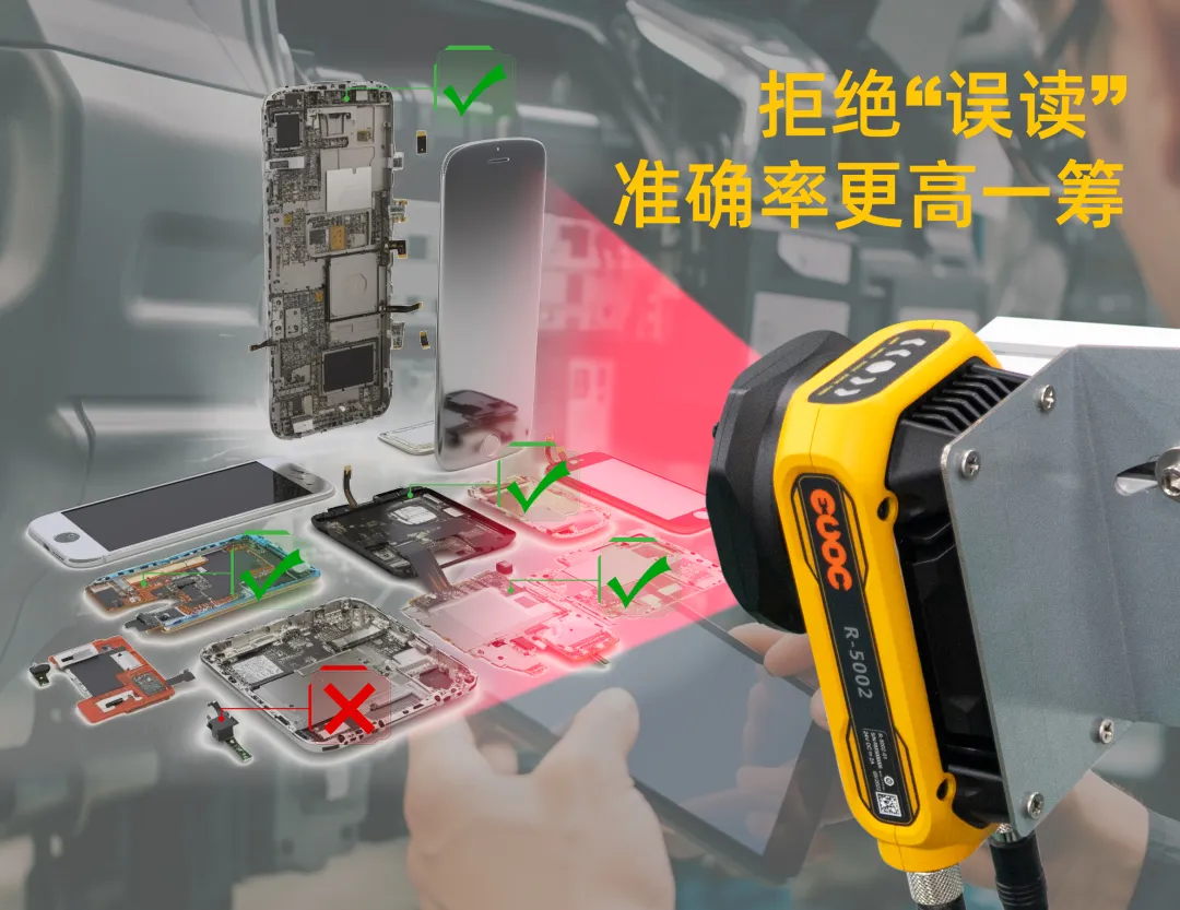 JIUYOU九游R-5000系列智能读码器支持ROI顺序输出模式,可以快速定位误读产品确认问题。同时搭载快速响应的影像传感器,确保每一个图像质量精细优异,实现高精准读取。